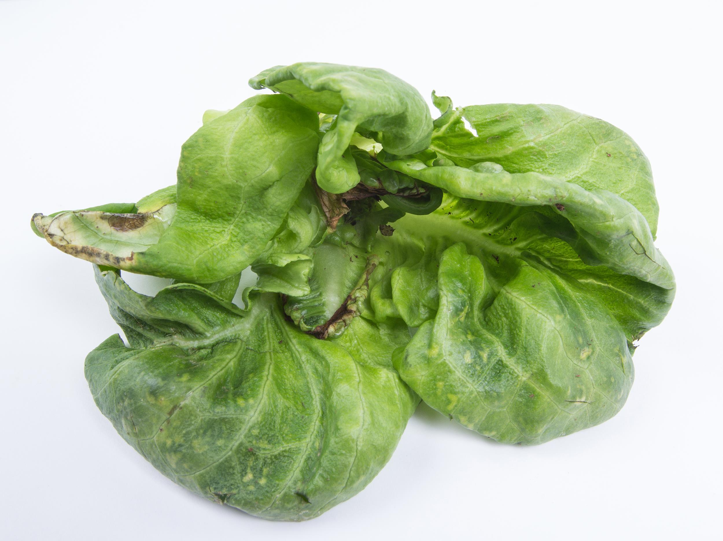 Description: Une laitue Boston (cv 'Flandria') montre une malformation sévère des feuilles. Les feuilles du cœur sont nécrosées et la croissance du bourgeon terminal est inhibée. Les feuilles médianes et de la couronne sont enroulées vers l’extérieur, épaisses, craquantes et montrent une marbrure jaune entre les nervures près de la marge du limbe. Les nervures sont parfois blanchâtres. Les tests de laboratoire se sont avérés négatifs pour la détection de phytoplasme et de virus. Le champignon Olpidium sp. n’a pas été détecté des racines (virus des grosses nervures (MLBVV)). Les symptômes sont caractéristiques d’une carence en bore. Il est également possible que le MLBVV soit impliqué dans les symptômes (nervures jaunes) mais le vecteur n’a pas été observé dans les racines et nous ne possédons pas l’anticorps pour détecter ce virus.