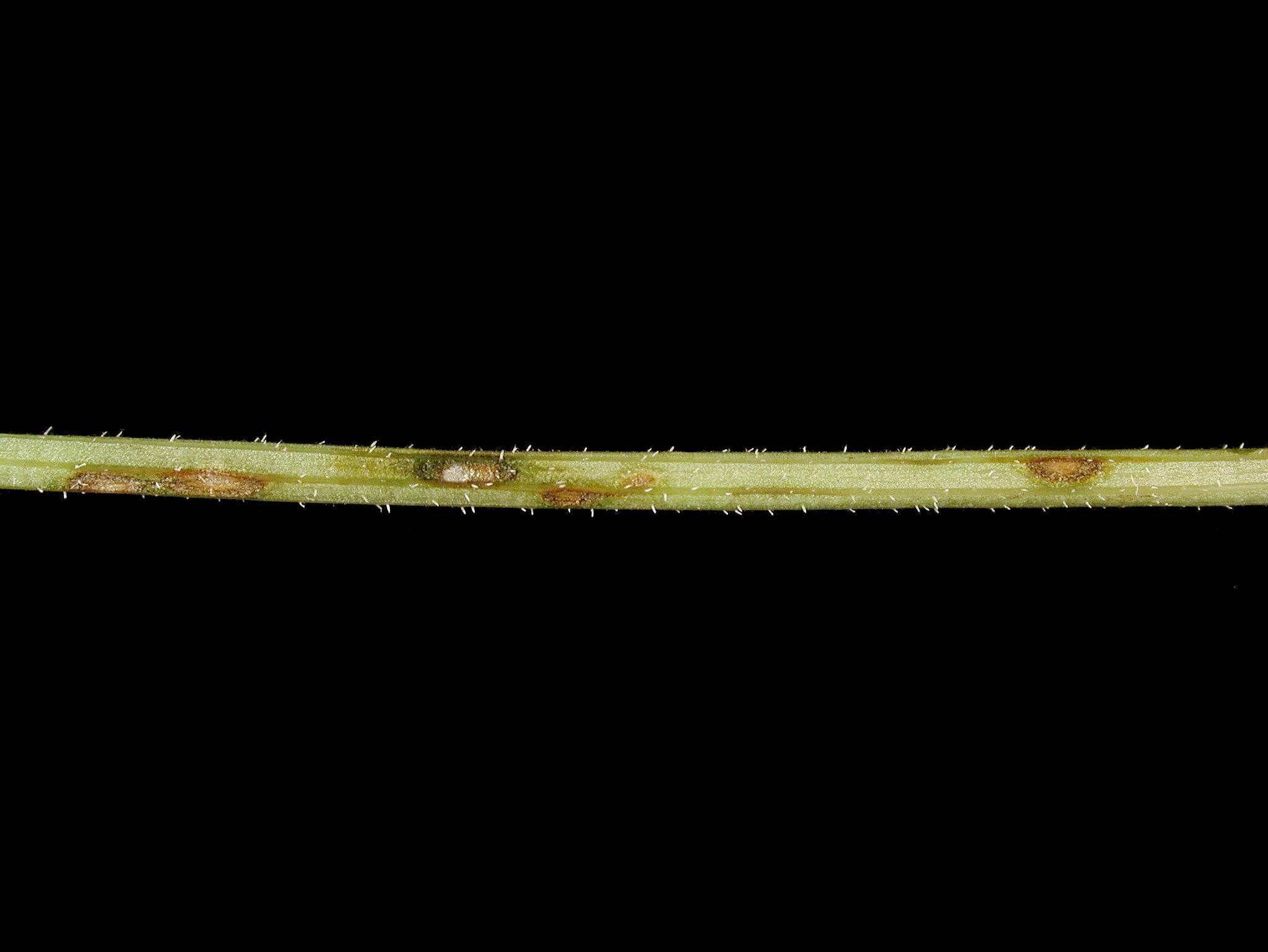 Légende: Taches sur pétiole d'une feuille de carotte