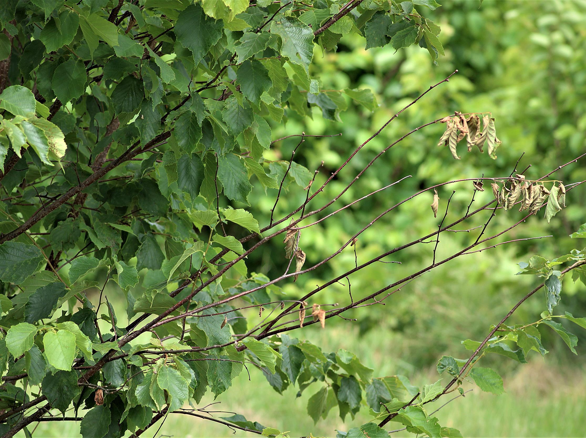: Tige de noisetier affectée par la brûlure orientale du noistier