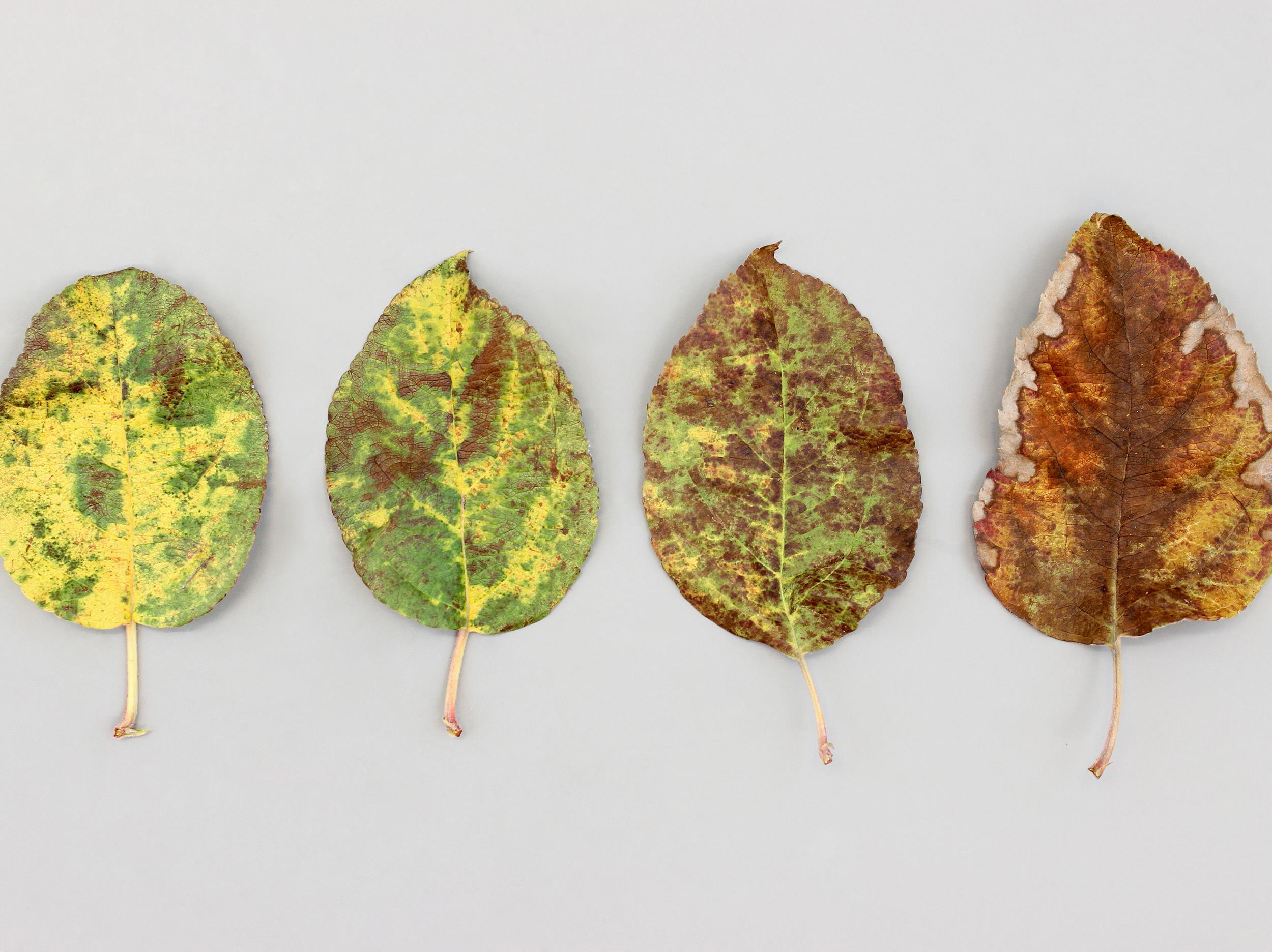 Légende: Jaunissement et brunissement sur feuilles de pommier