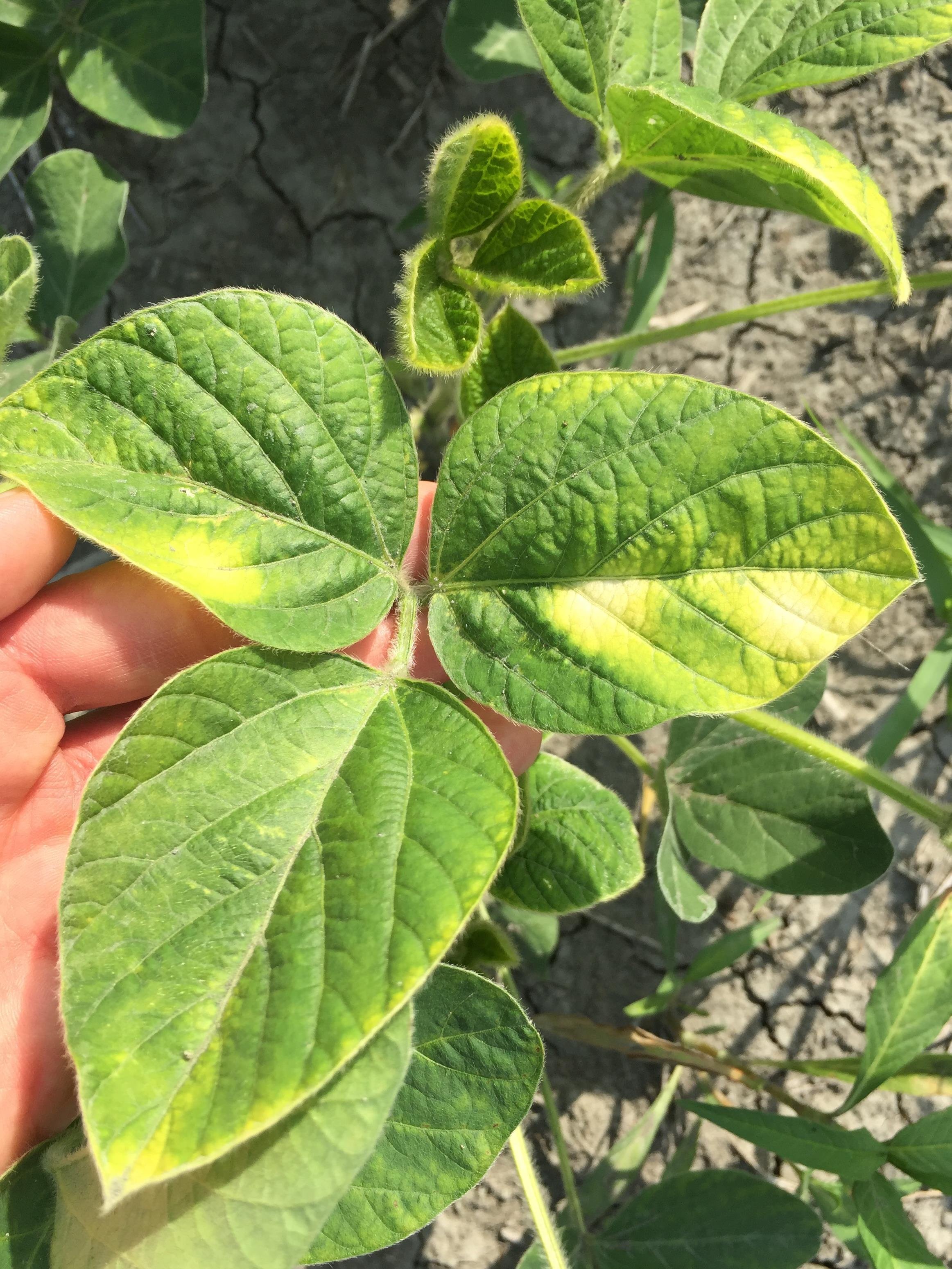 Légende: Feuille de soya avec jaunissement internervaire