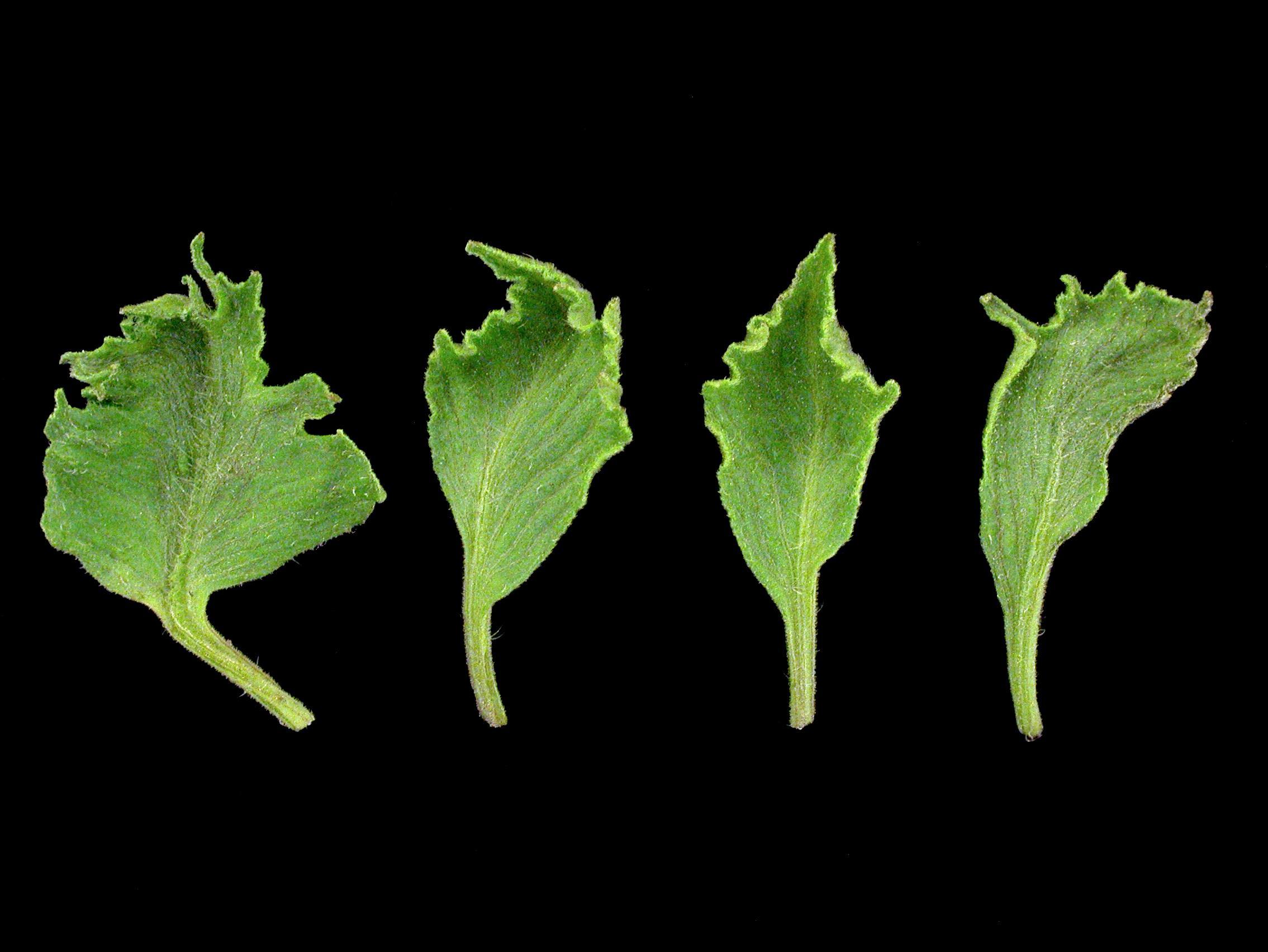 Description: Des folioles d'une feuille médiane de tomate de serre (cv 'Trust') montrent une malformation qui se manifeste par des feuilles en forme de cuillère, des nervures parallèles et une marge frisée. Le résultat des analyses effectuées par le Laboratoire d'expertises et d'analyses alimentaires (LEAA) du MAPAQ a permis de détecter les herbicides suivants du sol et des tissus végétaux : le clopyralide (sol et tissus végétaux), le 2,4-DB (sol et tissus) et le MCPB (sol et tissus). Tous ces produits peuvent provoquer des malformations et nuire à la croissance des plantes. La tolérance zéro s’applique à ces produits dans le sol et les tissus végétaux. Tous les plants de la serre étaient affectés et cultivés dans un mélange organique composé de tourbe et de compost provenant d’une champignonnière. Le compost utilisé contenait probablement des résidus d’herbicide.