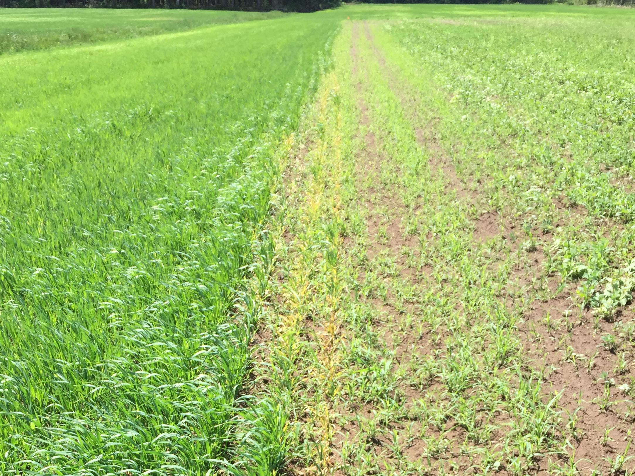Légende: Jaunissement et brûlure sur plants d’orge