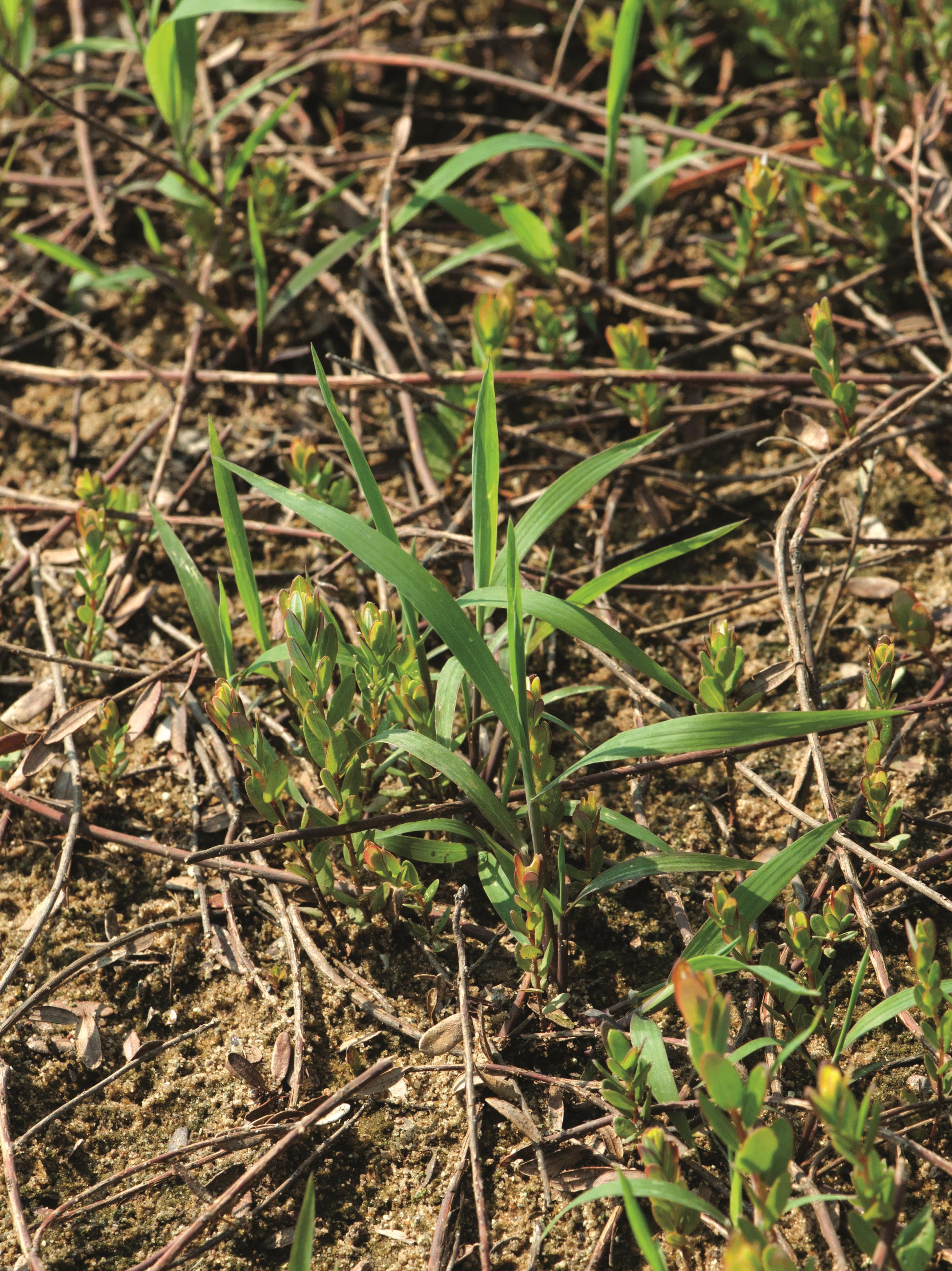 Légende: Plantules dans un champ de canneberges