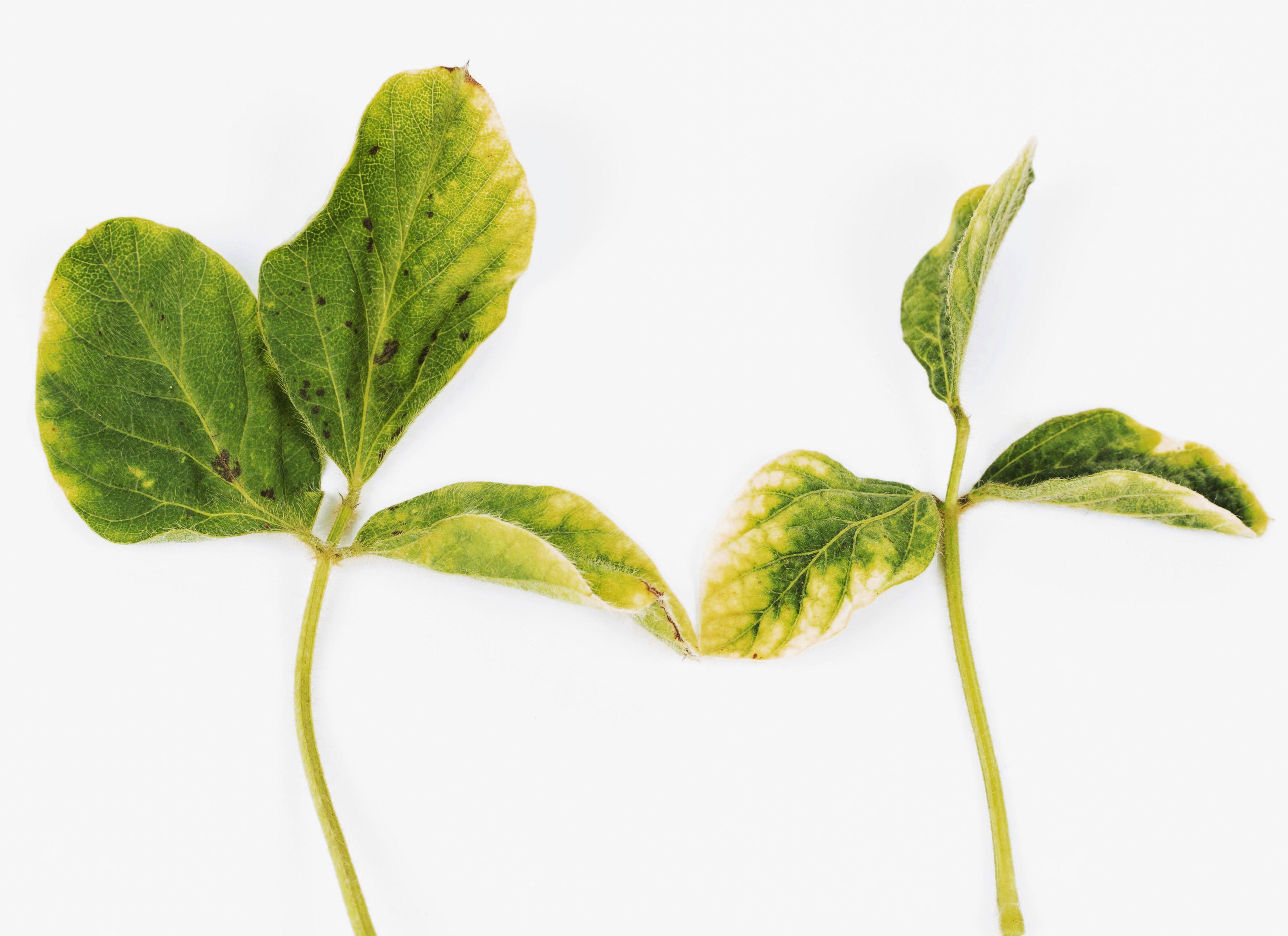 Légende: Jaunissement-blanchiment sur feuilles de soya