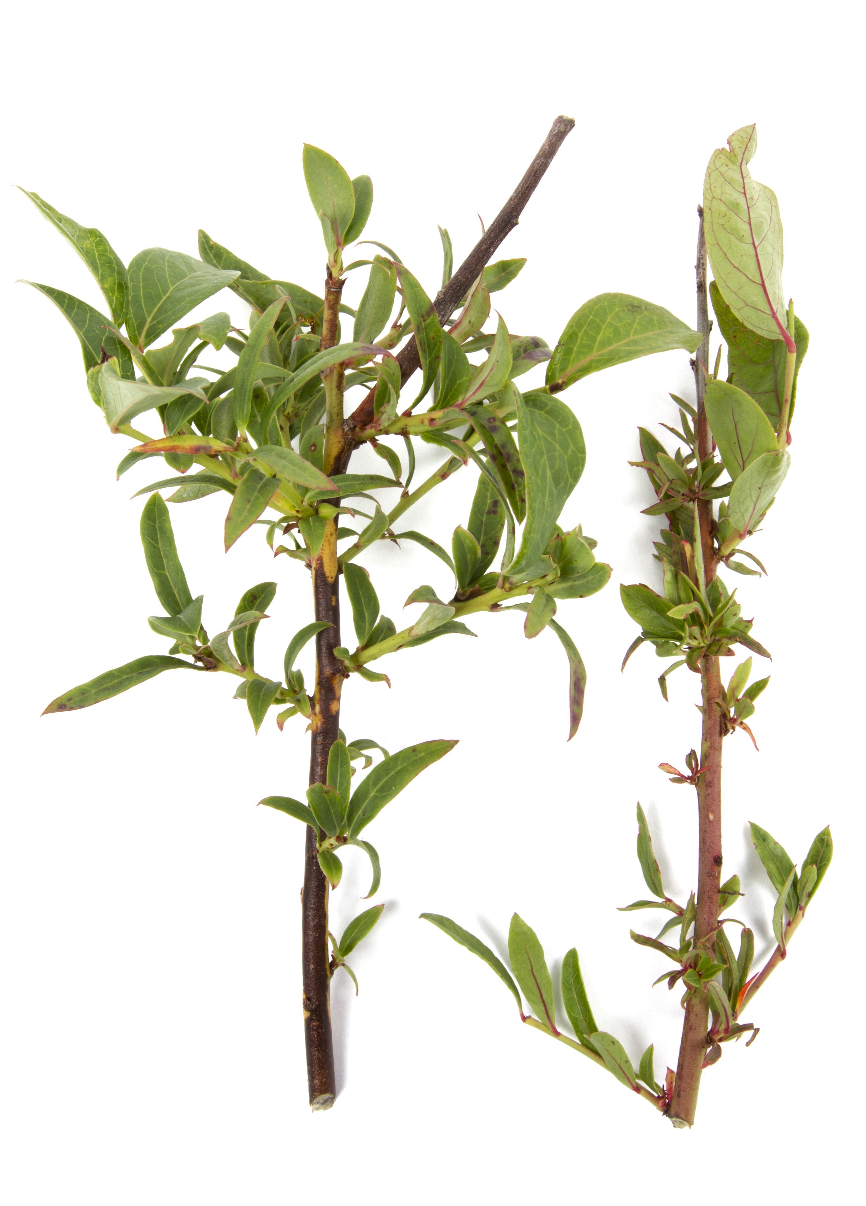Légende: Malformations des feuilles et brûlure des tiges de bleuet en corymbe