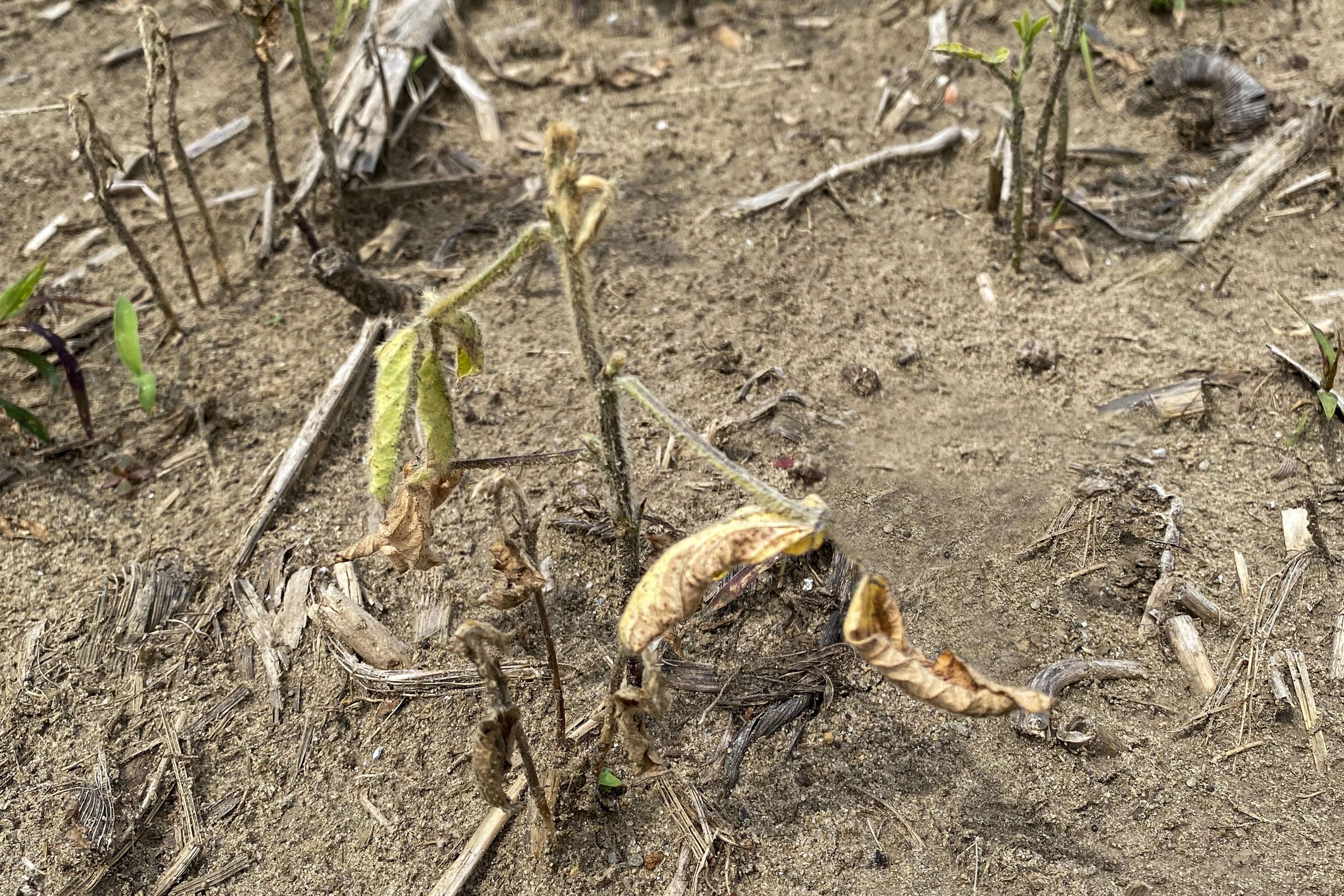 Légende: Plantes de soya affectée par le nématode à kyste du soya (Heterodera glycines)