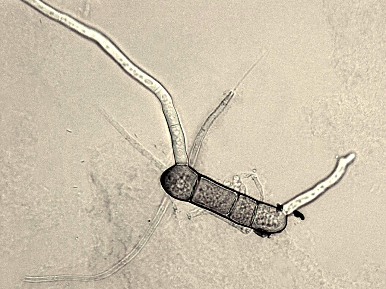 : Conidie de Bipolaris sp. qui germe aux deux extrémités