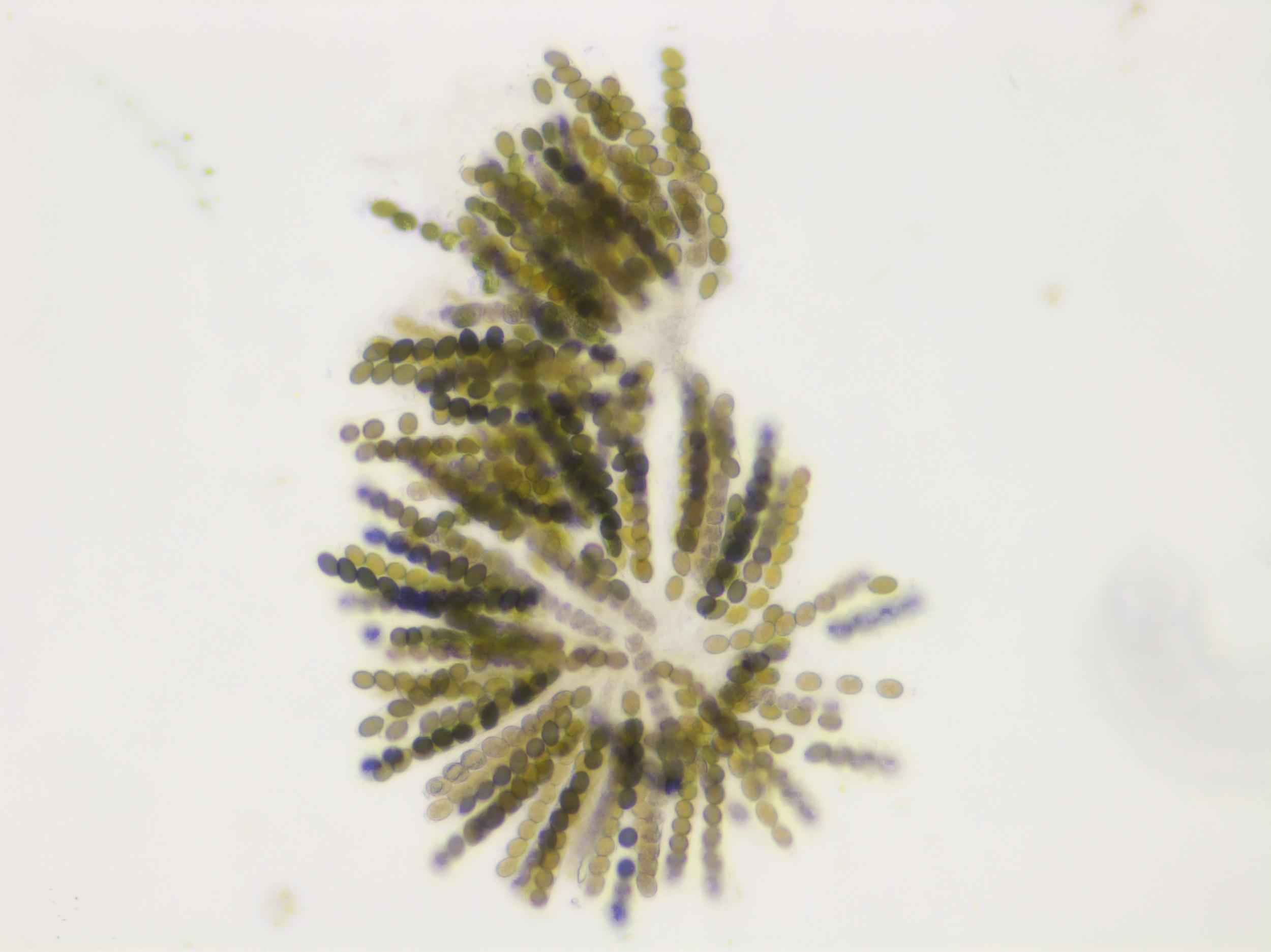 Légende: Contenu d'un périthèce de Sordaria sp. : nombreux asques remplis d'ascospores