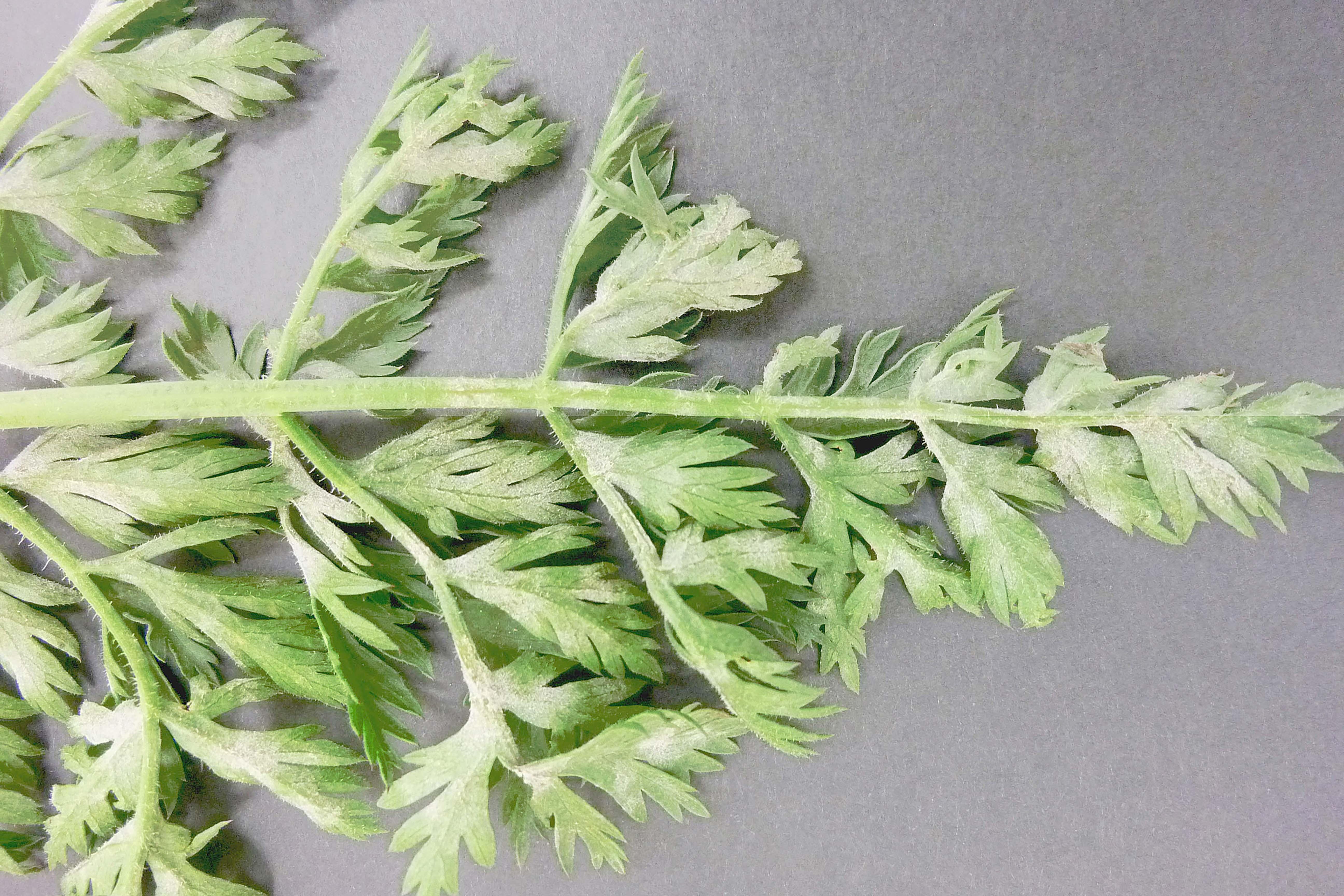 Légende: Mycélium blanc sur feuille de carotte
