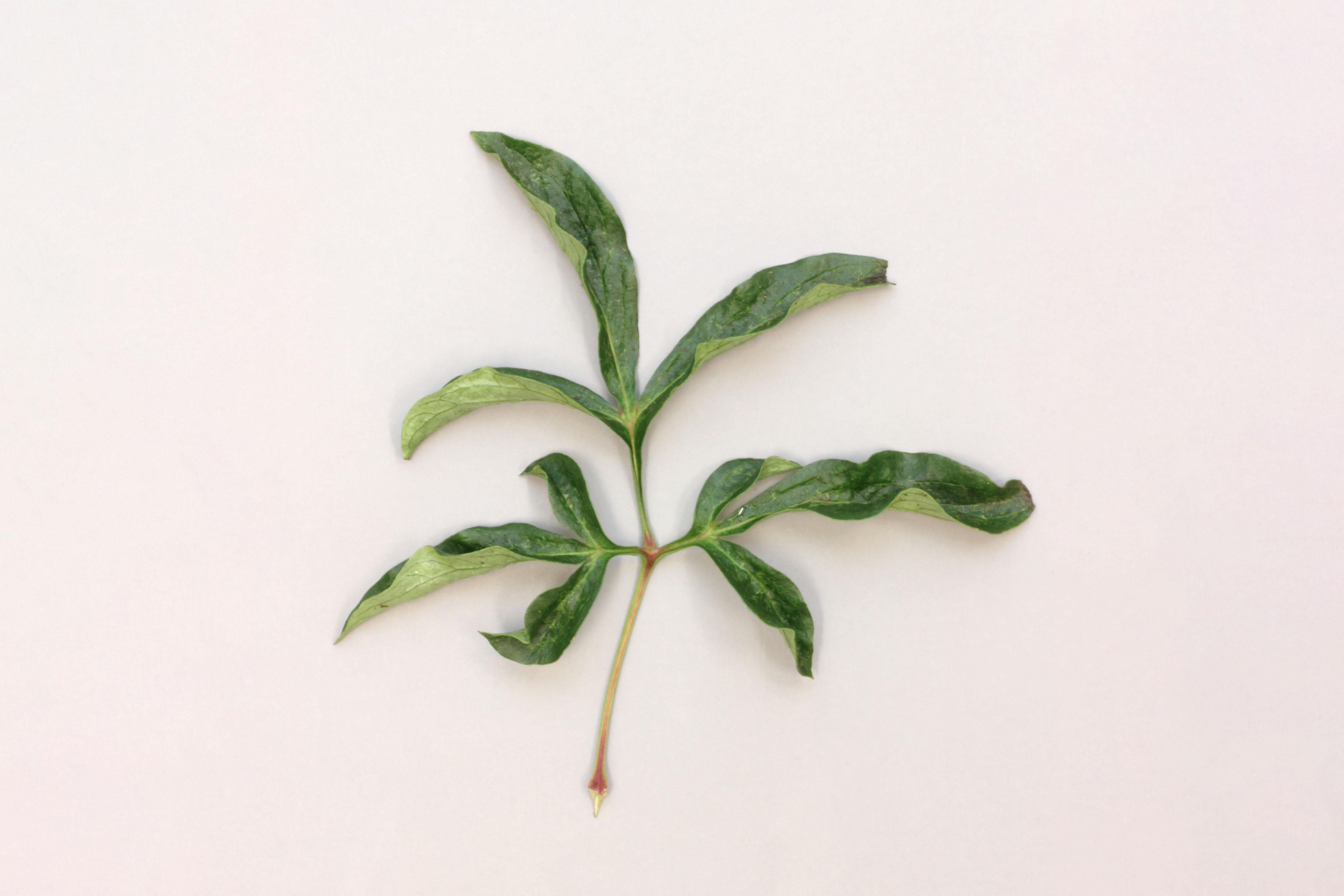 Description: Des feuilles de pivoine sont déformées et cassantes et montrent une marbrure vert pâle à la face supérieure. Tous les niveaux de feuilles sont touchés. Les tests de laboratoire ont révélé la présence de phytoplasme dans les feuilles. Il s’agit probablement du phytoplasme de la jaunisse de l’aster.