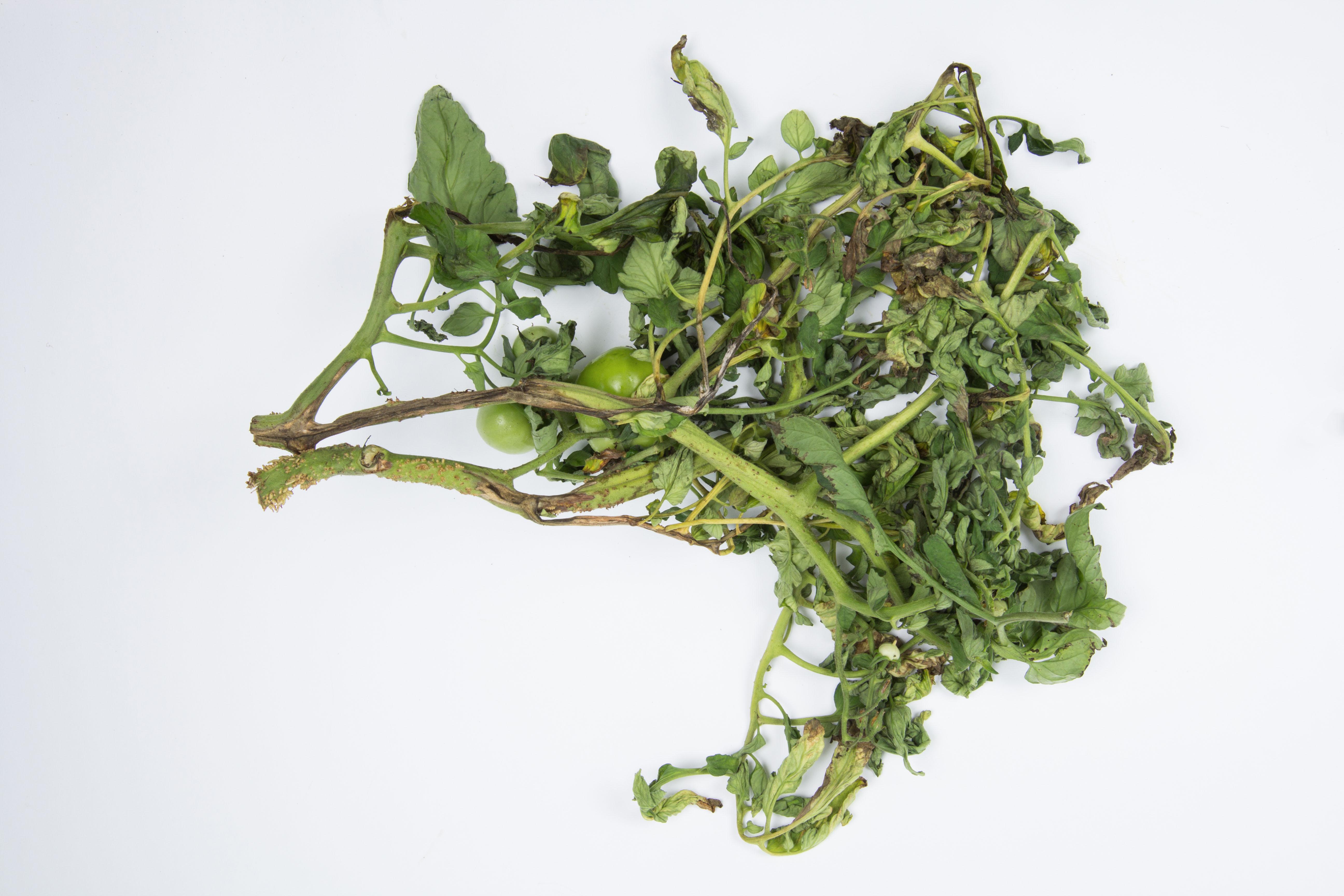 Description: Les tiges de tomate de champ (cv 'Prima Red') portent des racines adventives et des chancres brun pâle à noirs dans lesquels les tissus s'affaissent. Certains chancres se retrouvent dans les parties supérieures des tiges. Les feuilles localisées dans les zones supérieures aux chancres sont jaunes et flétries. Les tests de laboratoire ont révélé la présence de la bactérie Pseudomonas corrugata, responsable de la moelle noire chez la tomate.