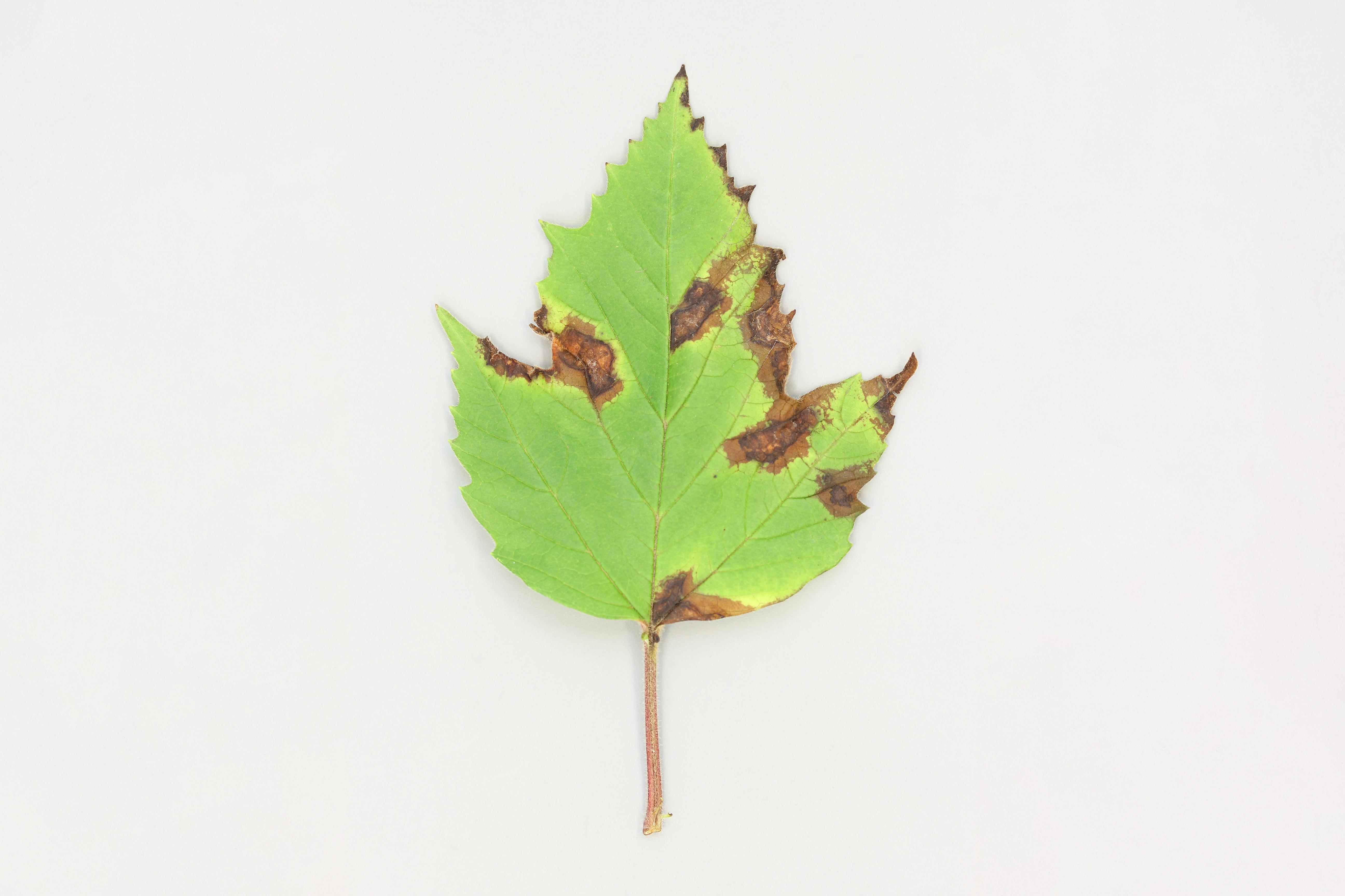 Légende: Brûlure marginale et taches sur feuille de viorne
