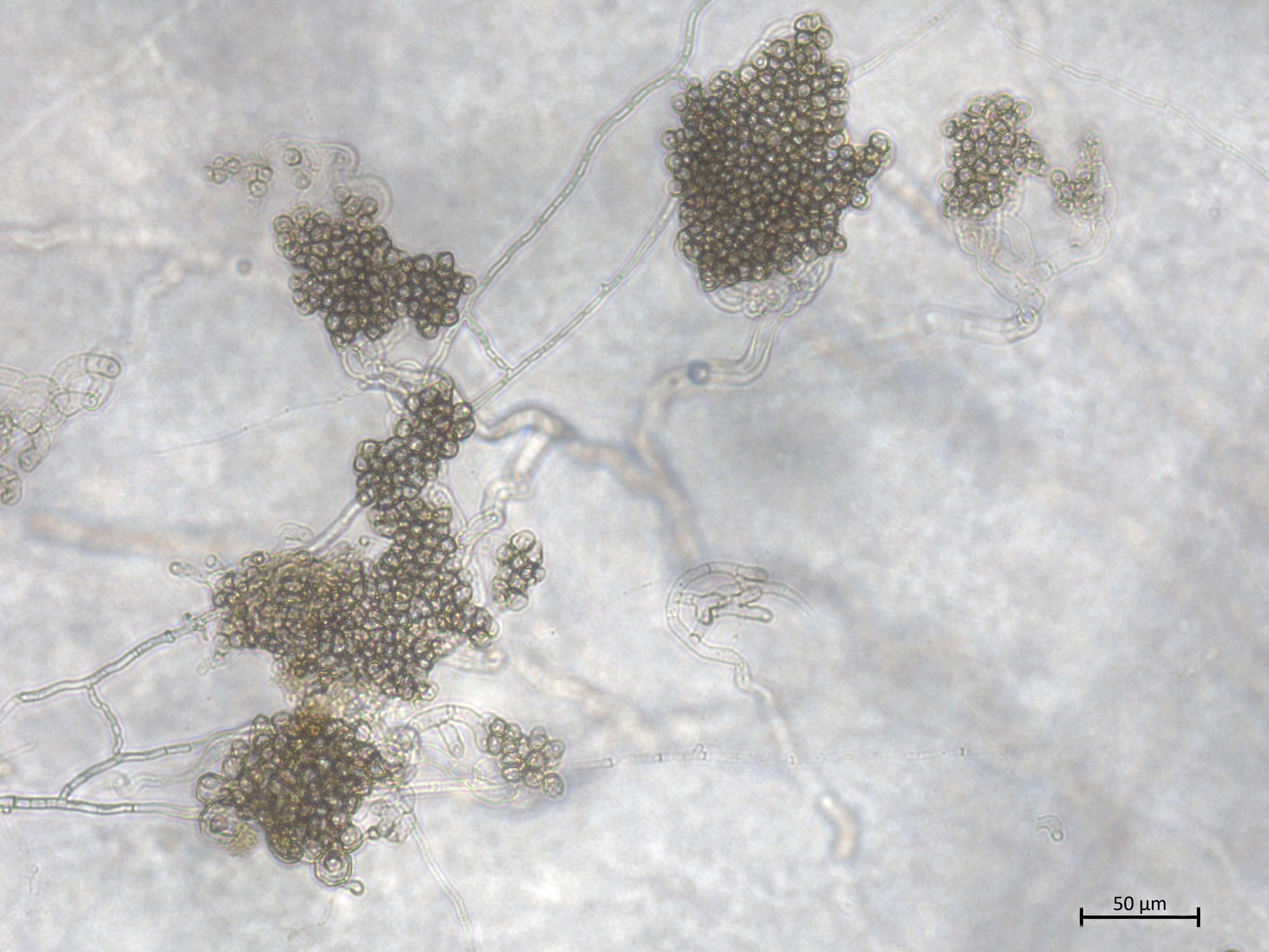 : Appressorias de Botrytis cinerea vus au microscope inversé