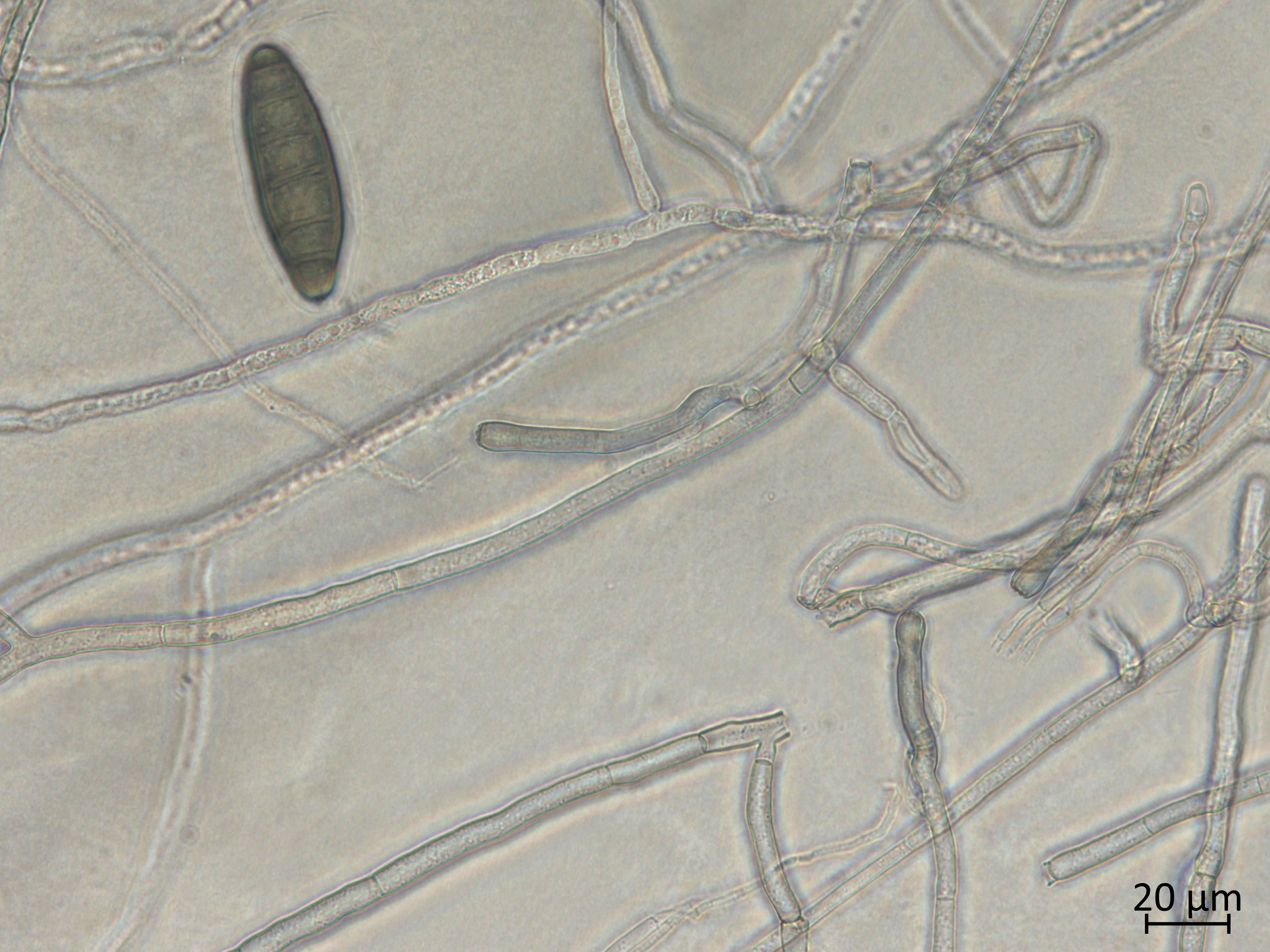 Légende: Hyphes et conidie de Bipolaris sorokiniana.