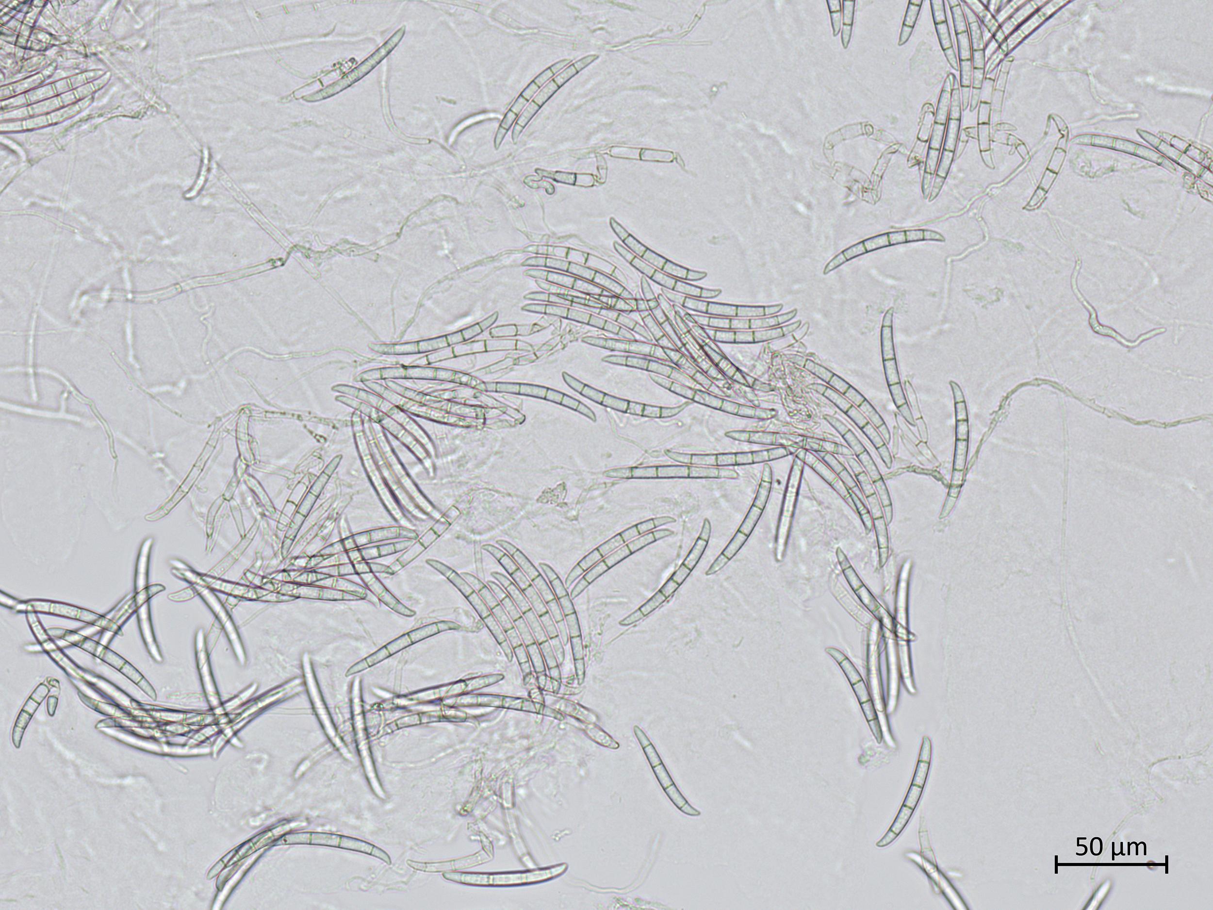 Légende: Macroconidies de Neocosmospora solani.