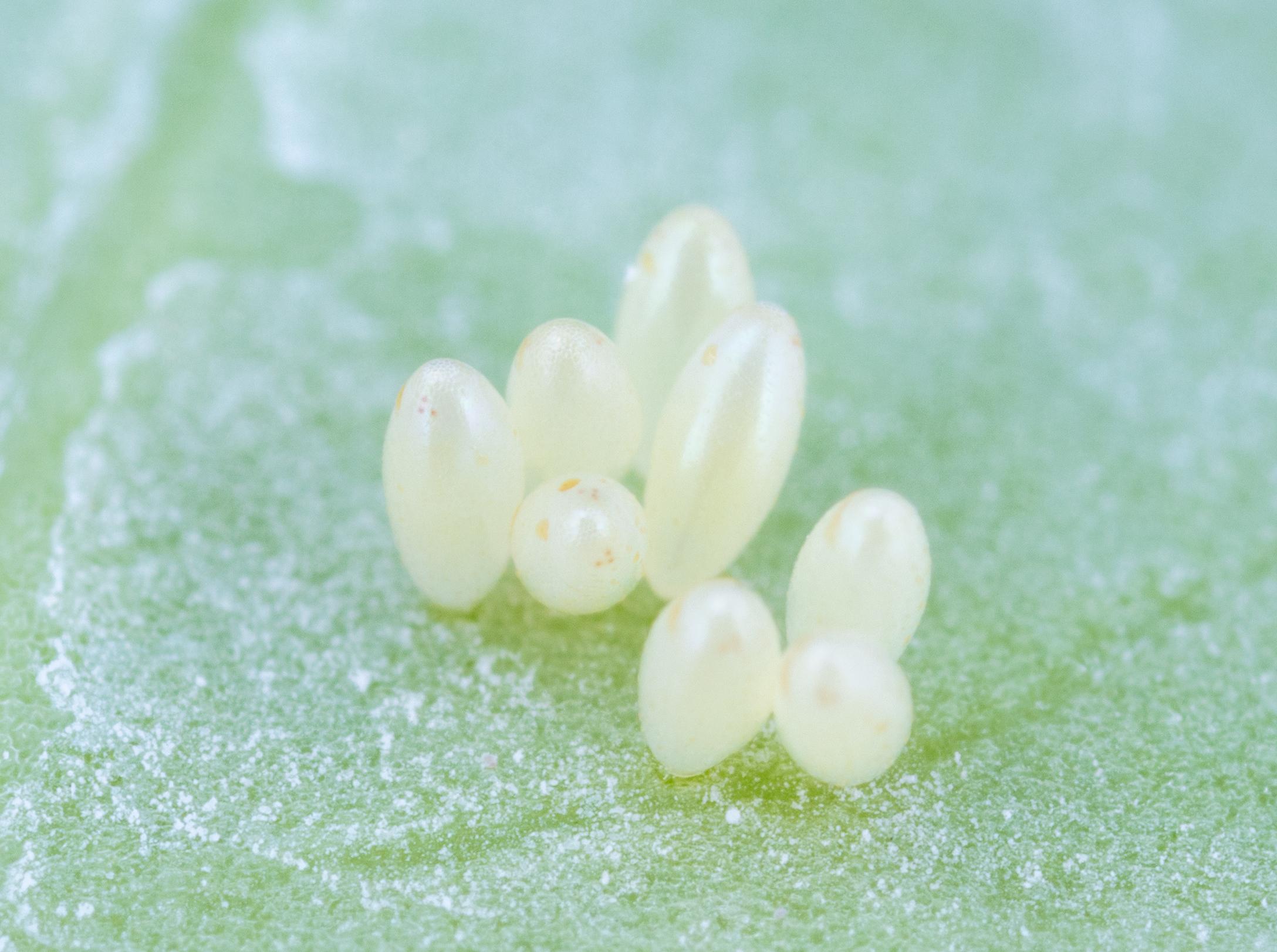 : Masse d'oeufs sur une feuille