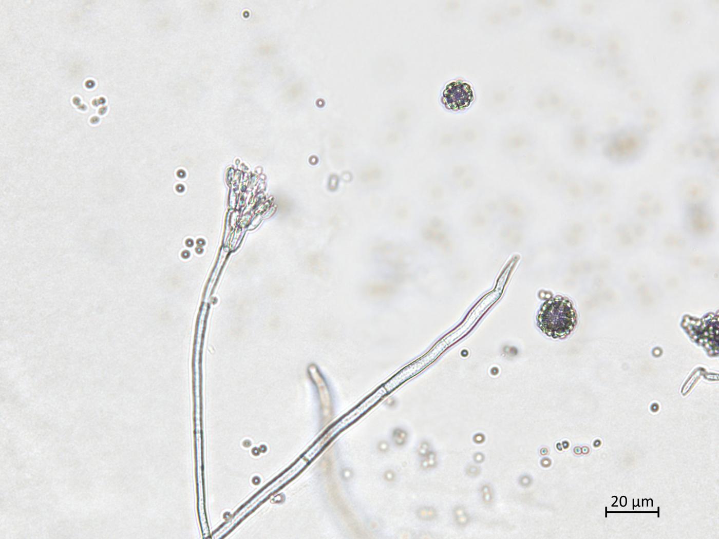 : Conidies de Penicillium olsonii.