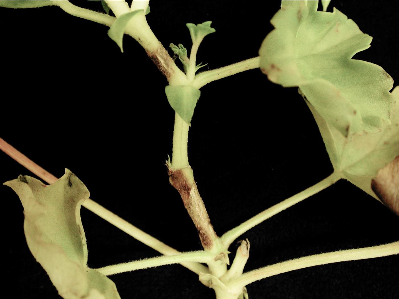 Description: Un plant de géranium montre la présence d’un manchon liégeux finement crevassé entourant ou non un entrenœud souvent localisé vers l’extrémité de la tige. C’est l’avant-dernier entrenœud qui est affecté. Certains manchons liégeux ne sont apparents que sous la tige. Il n’y a aucun dommage des tissus en profondeur sous ces manchons. Le feuillage est intact. Les tests de laboratoire se sont avérés négatifs pour la détection de champignons et de virus dans les manchons liégeux.   Compte tenu du symp… En savoir plus