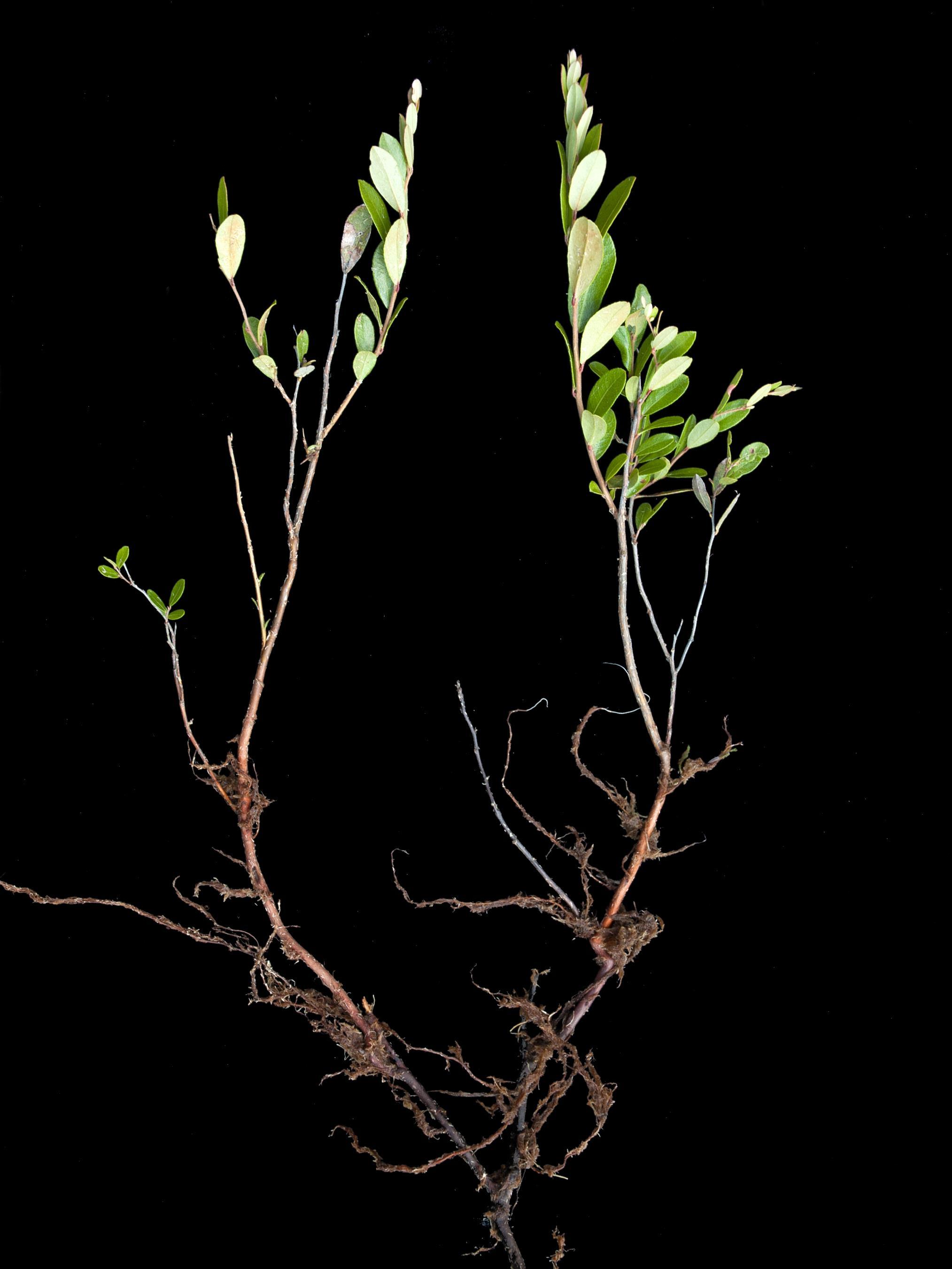 Légende: Plant complet, rhizomes ligneux et racines